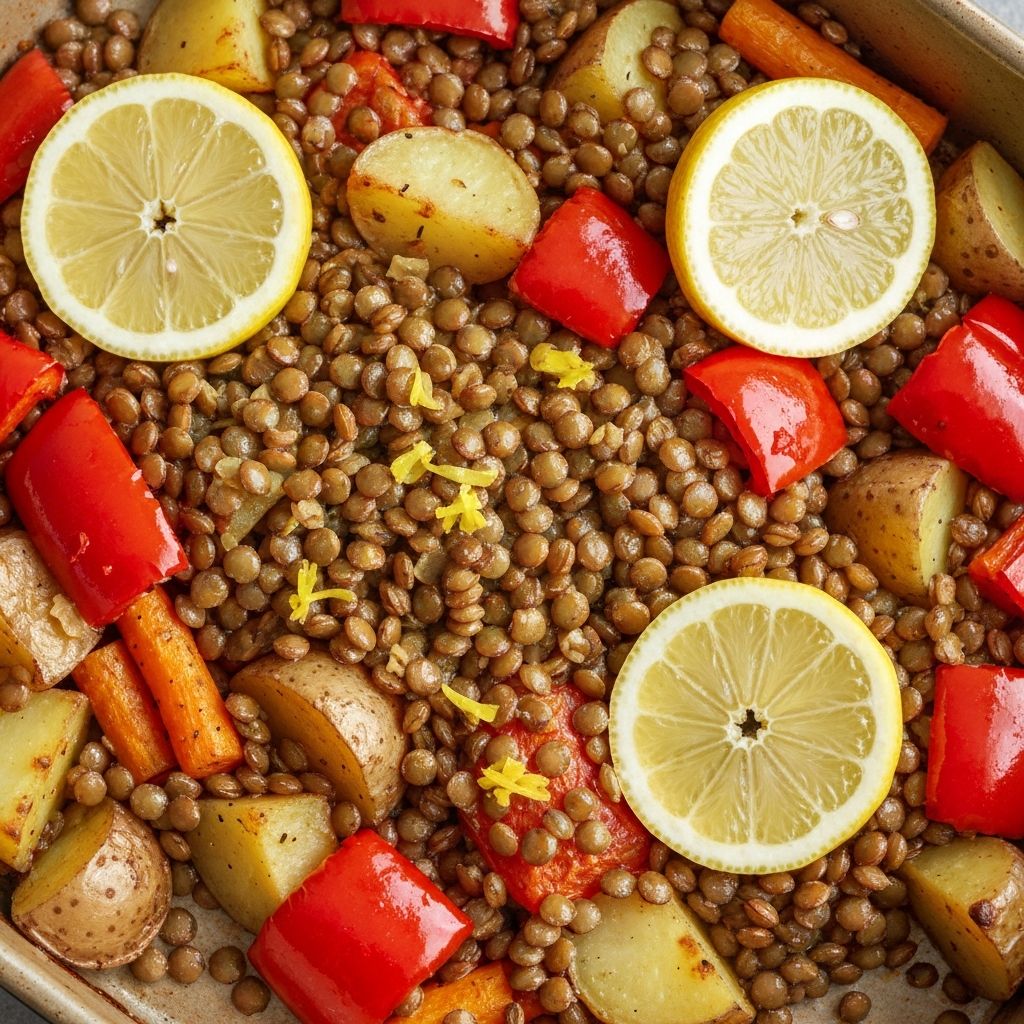One-Pan Lemon Herb Lentils & Roasted Vegetables